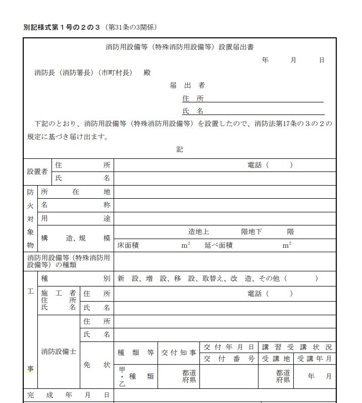 消防設備を設置したり、改修したりする場合は、消防署への届出が義務付けられています。