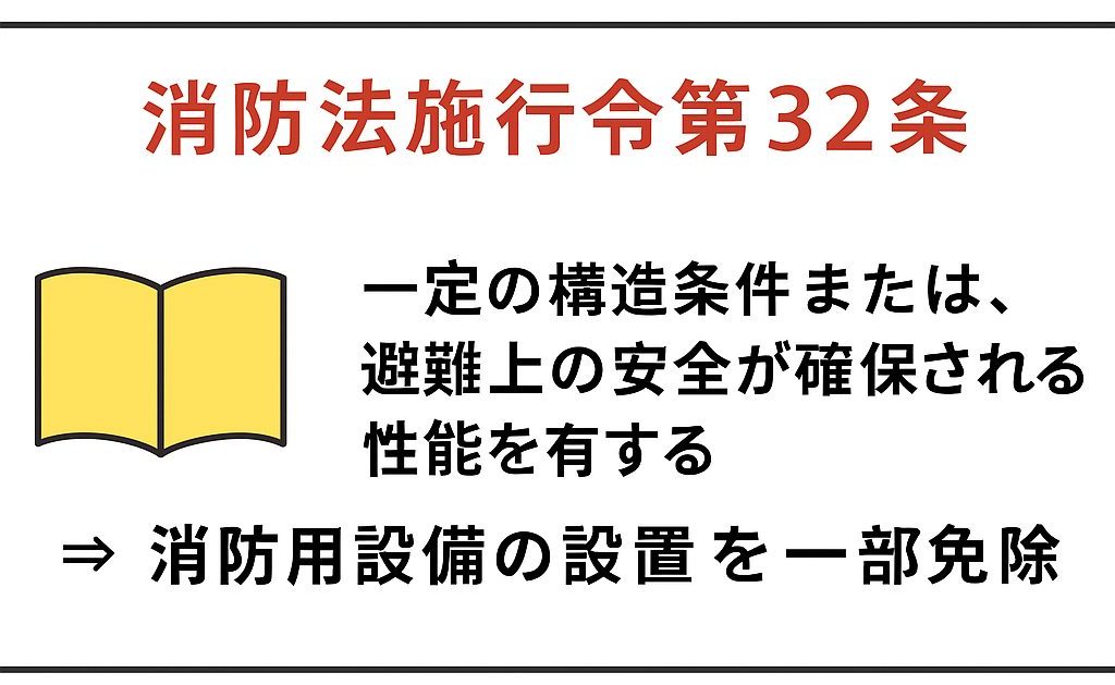 これが「共同住宅特例」と呼ばれるもので、正式には消防法施行令第32条に基づく特例として扱われています。